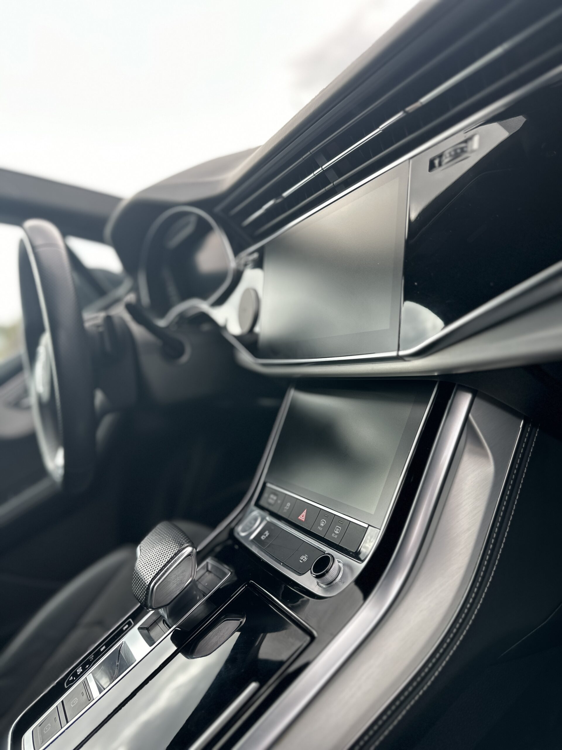 Fantastyczna przemiana – Audi Q7 oklejone w kolorze Avery Matte Dark Grey! Dodatkowo wymiana emblematów na czarne, pełen dechroming na czarny połysk, oklejenie felg, folia PPF na reflektory oraz ekrany i piano wewnątrz auta. Takie rzeczy tylko w Monaco Garage – profesjonalne oklejanie samochodów Gdynia. Aby ułatwić czyszczenie matowej folii pokryliśmy całe auto powłoką Apollo. Jak Ci się podoba?