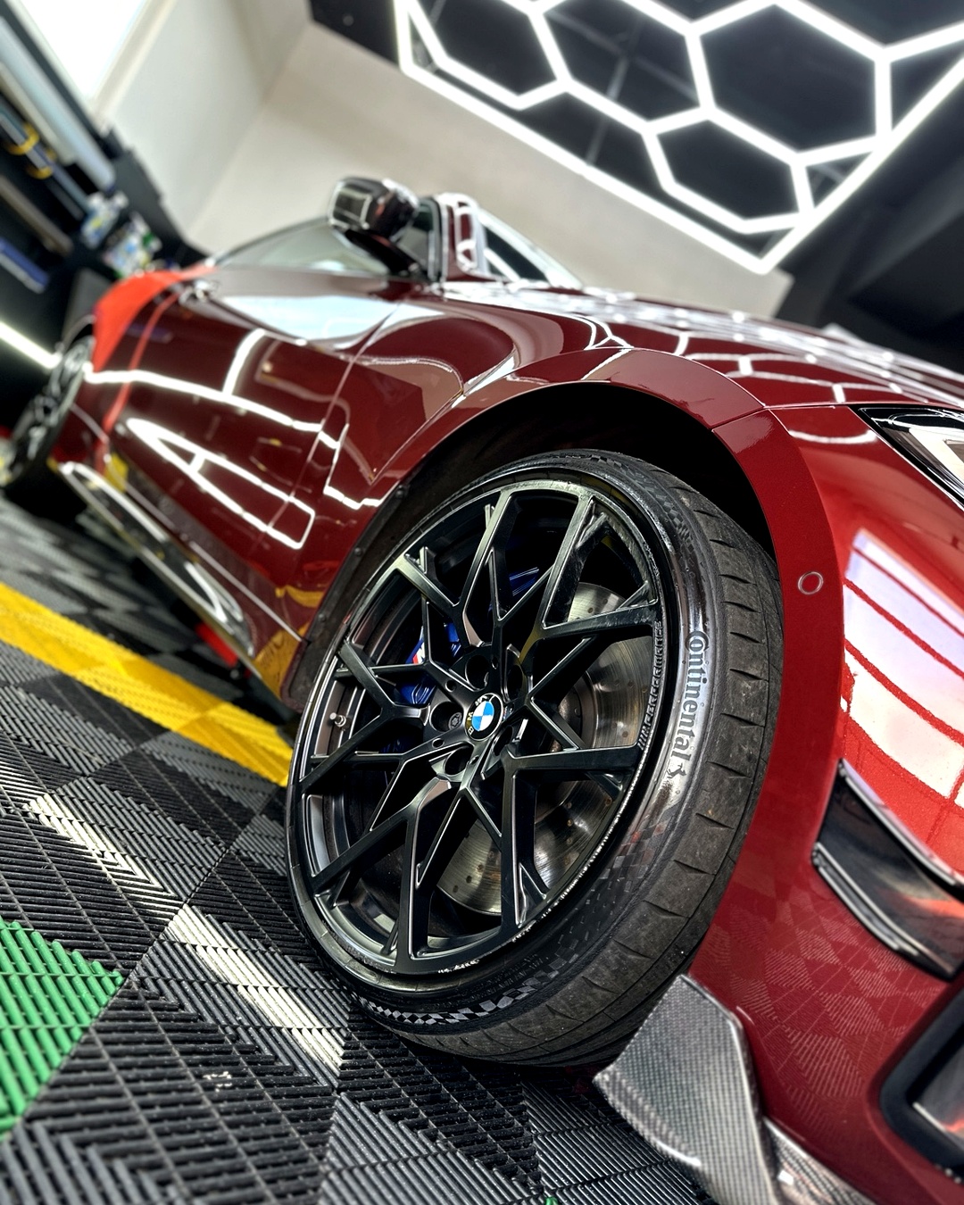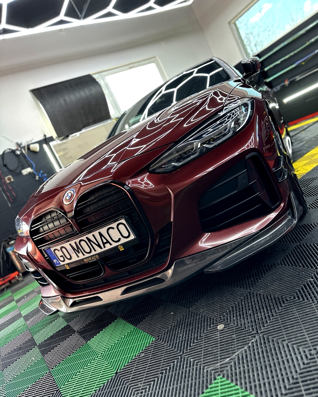 Przy takiej mocy i prędkości auta odprysków i rys była cała masa. Zaczęliśmy od regeneracji reflektorów, pełnej korekty lakieru, szeregu zaprawek i oklejenia folią PPF. Później przyszedł czas na przyciemnienie szyb oraz carbonowy PPF na dach