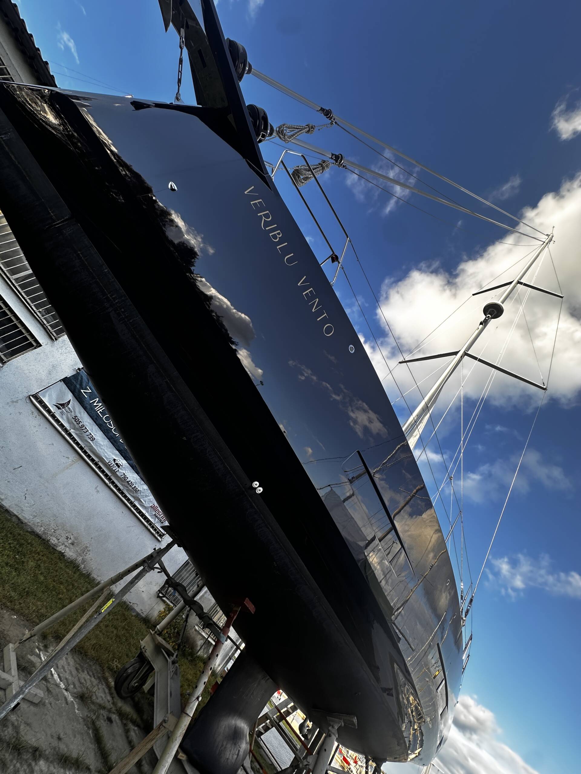 Żaglówka Hanse 510 zabezpieczona w całości folią PPF. Korekta żelkotu, 60m2 folii oraz zmiana koloru Hardtopu na czarny połysk. Zapraszamy na oklejanie łodzi i jachtów do Monaco Garage!