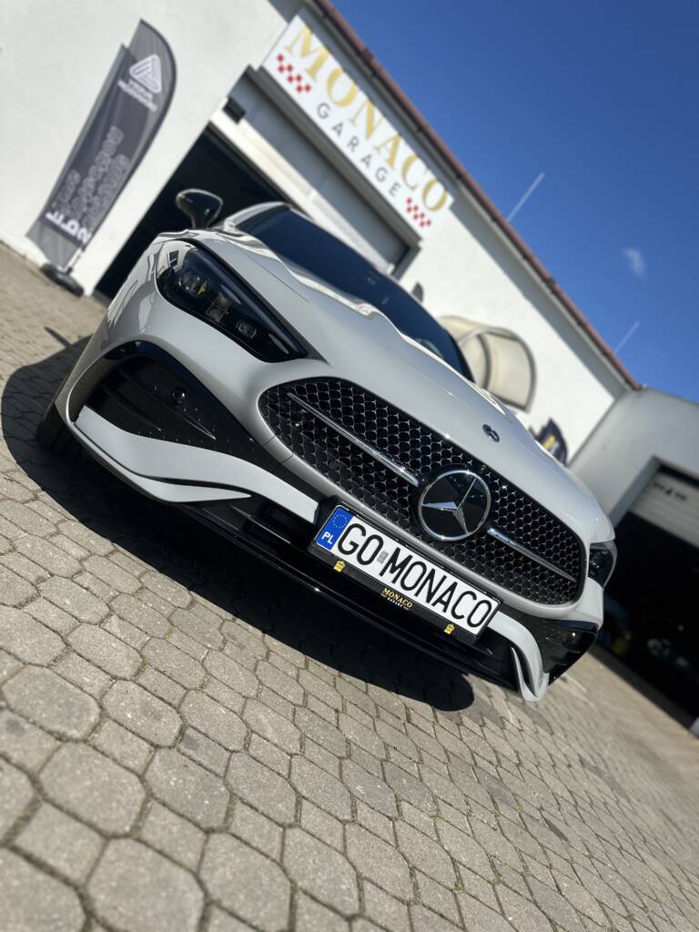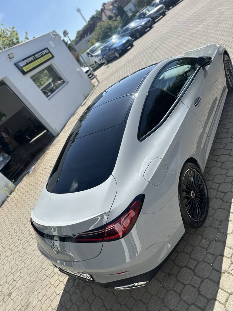 Oto nowy Mercedes CLE200 zabezpieczony w całości folią PPF.